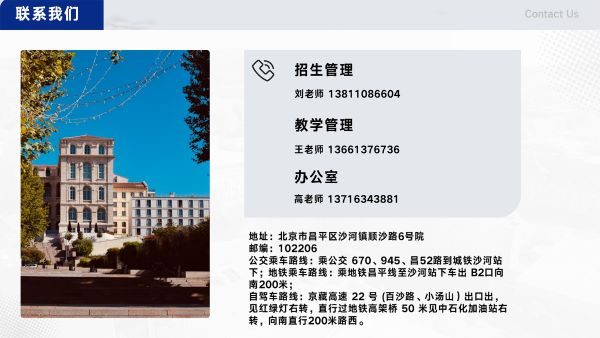 中國(guó)-北京市昌平區(qū)沙河鎮(zhèn)順沙路6號(hào)院(沙河大學(xué)城南) 全國(guó)招生服務(wù)熱線:010-51731888 010-51731836 (傳真)