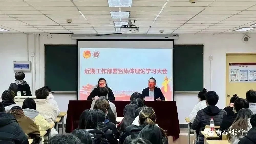 為進一步貫徹落實《新時代全面從嚴治團實施綱要》,提升我校各級團組織的組織力、引領力和服務力,推進全校共青團員深入學習貫徹黨的二十大精神,實現學校團學工作提質增效,校團委于11月26日晚在一號教學樓114召開了近期工作部署暨集中理論學習大會。團委書記田博、副書記趙妍、各級團學干部以及在校團員代表參會。