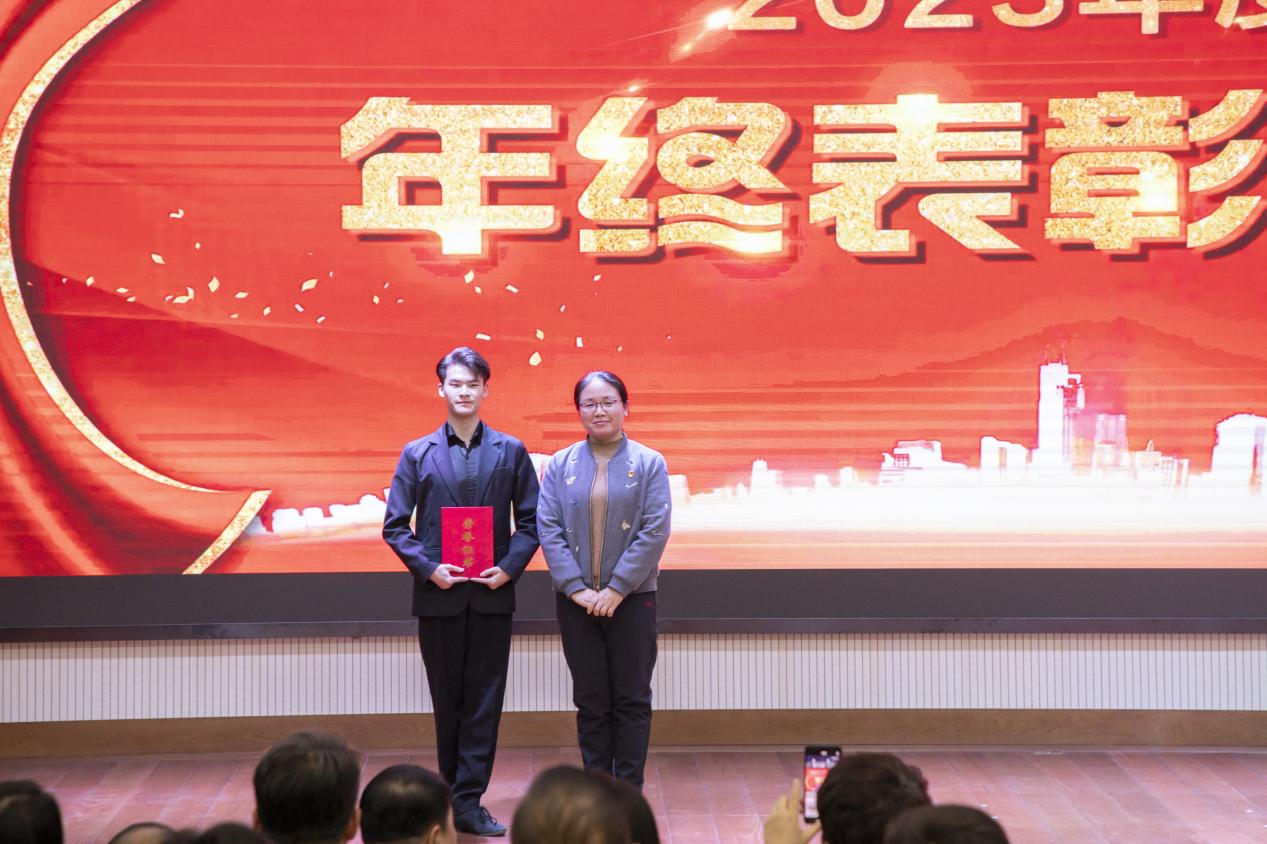 周忠校長(zhǎng)、李金華副書(shū)記分別宣讀了2023年優(yōu)秀教職工、鄭役兵獎(jiǎng)學(xué)金、優(yōu)秀學(xué)生、先進(jìn)班集體表彰決定。6名優(yōu)秀教職工、6名鄭役兵獎(jiǎng)學(xué)金獲獎(jiǎng)?wù)摺?名三好學(xué)生獲得者、5名優(yōu)秀學(xué)生干部獲得者、1個(gè)先進(jìn)班集體學(xué)生代表在現(xiàn)場(chǎng)師生的掌聲和助威聲中,依次登上頒獎(jiǎng)舞臺(tái)接受頒獎(jiǎng)。