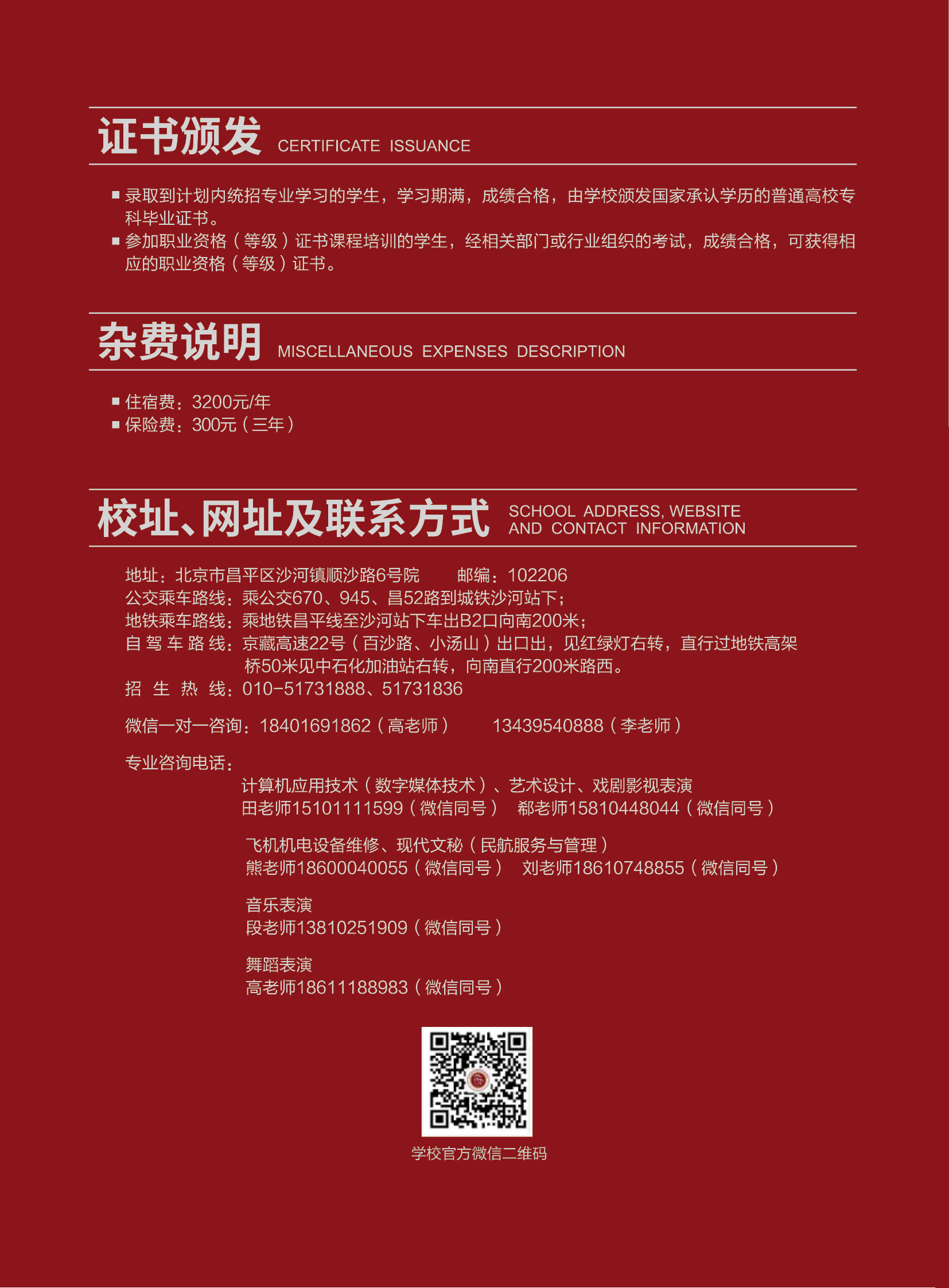 中國-北京市昌平區沙河鎮順沙路6號院(沙河大學城南) 全國招生服務熱線:010-51731888 010-51731836 (傳真)