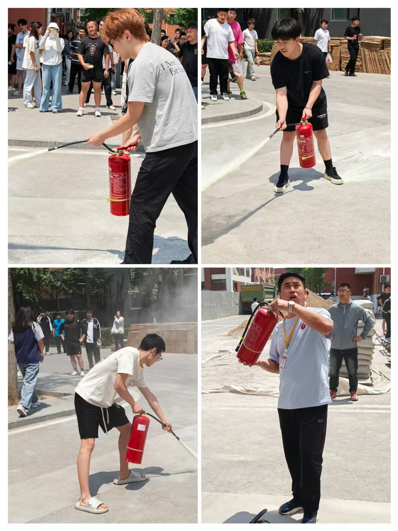 模擬火情現(xiàn)場(chǎng)設(shè)置在學(xué)生2號(hào)公寓。隨著警報(bào)聲響起,演練正式開(kāi)始。師生按照預(yù)定的疏散路線迅速而有序地撤離,整個(gè)過(guò)程大家積極參與,保持冷靜,不推搡、不擁擠,確保了疏散順利進(jìn)行。尤其在講解滅火器使用的環(huán)節(jié),同學(xué)們特別認(rèn)真參與實(shí)踐,切身感受到火災(zāi)來(lái)臨的緊急性和危險(xiǎn)性。