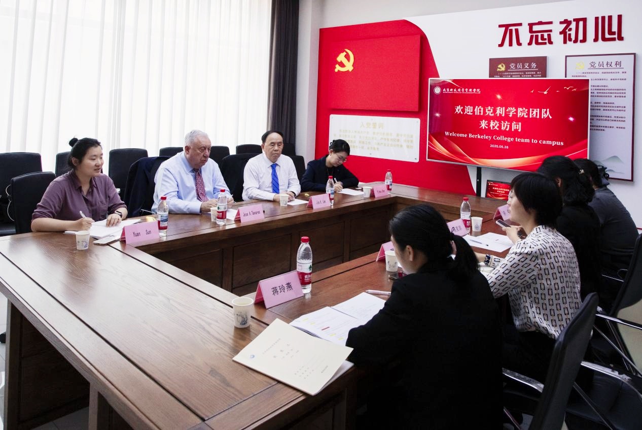 2025年5月28日美國伯克利學院副校長何塞·塔瓦雷斯(Jose Tavares)、國際事務部主任李宏儒(Jim Lee)等一行4人訪問我校,就深化兩校交流合作特別是課程體系共建、師資隊伍協同培育、短期游學等方面開展探討,聯合啟動"跨國學歷提升計劃",打造創新型國際化人才培養范式。