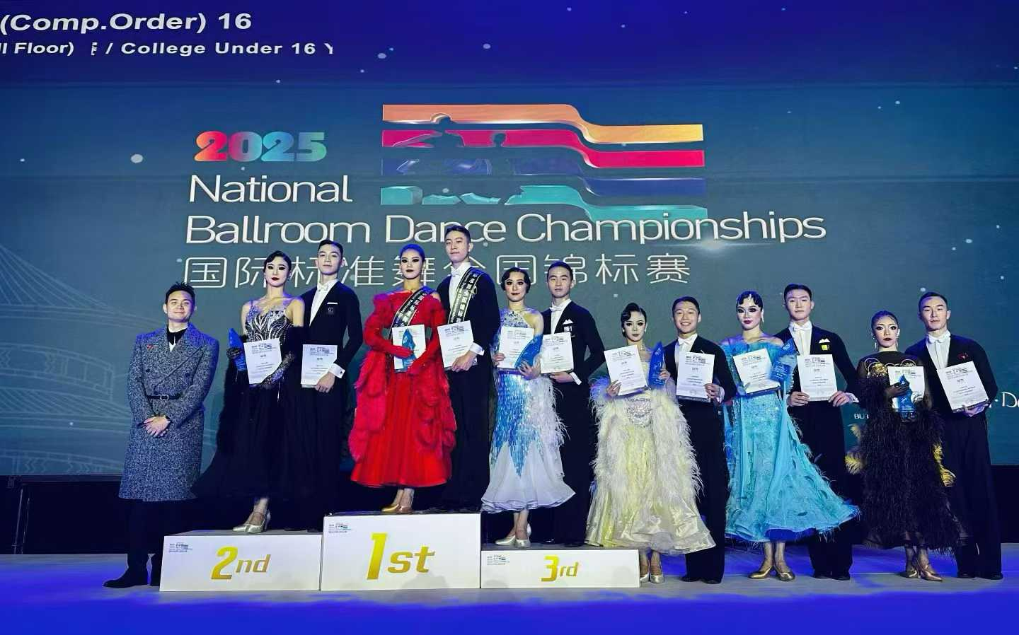【概要描述】2025年10月23日至26日,北京的夜空被賽事聚光燈點亮,2025GLDC國際標準舞全國錦標賽在此震撼啟幕。在這場高手云集的較量中,我校國際舞蹈學院舞蹈表演(體育舞蹈)專業的學子們,憑借扎實的技術功底與出色的舞臺表現力,在多輪激烈角逐中頂住壓力、突破重圍,最終從眾多強手中脫穎而出,一舉斬獲多項榮譽,用實力詮釋了專業風采。
