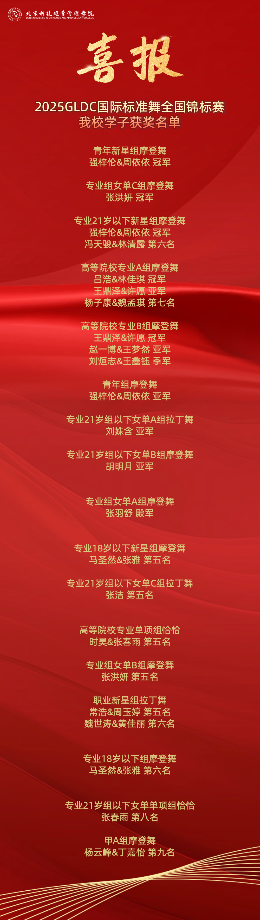 喜報 | 我校學子閃耀2025GLDC全錦賽,舞蹈表演(體育舞蹈)專業實力載譽而歸!