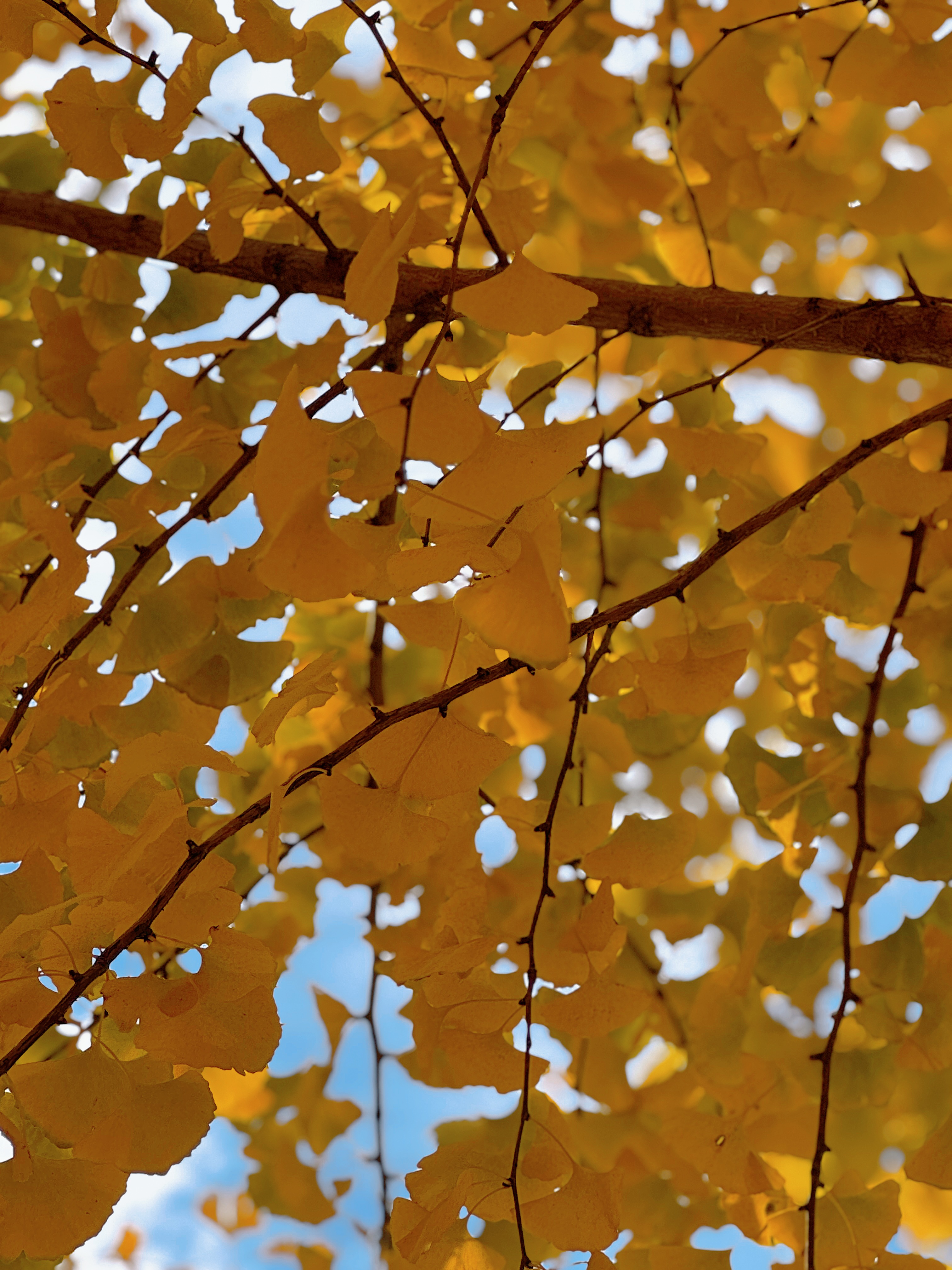 金黃的樹葉與溫暖的燈火不期而遇,為這個充滿煙火氣的地方,平添了一抹豐盈與溫馨的秋意。
