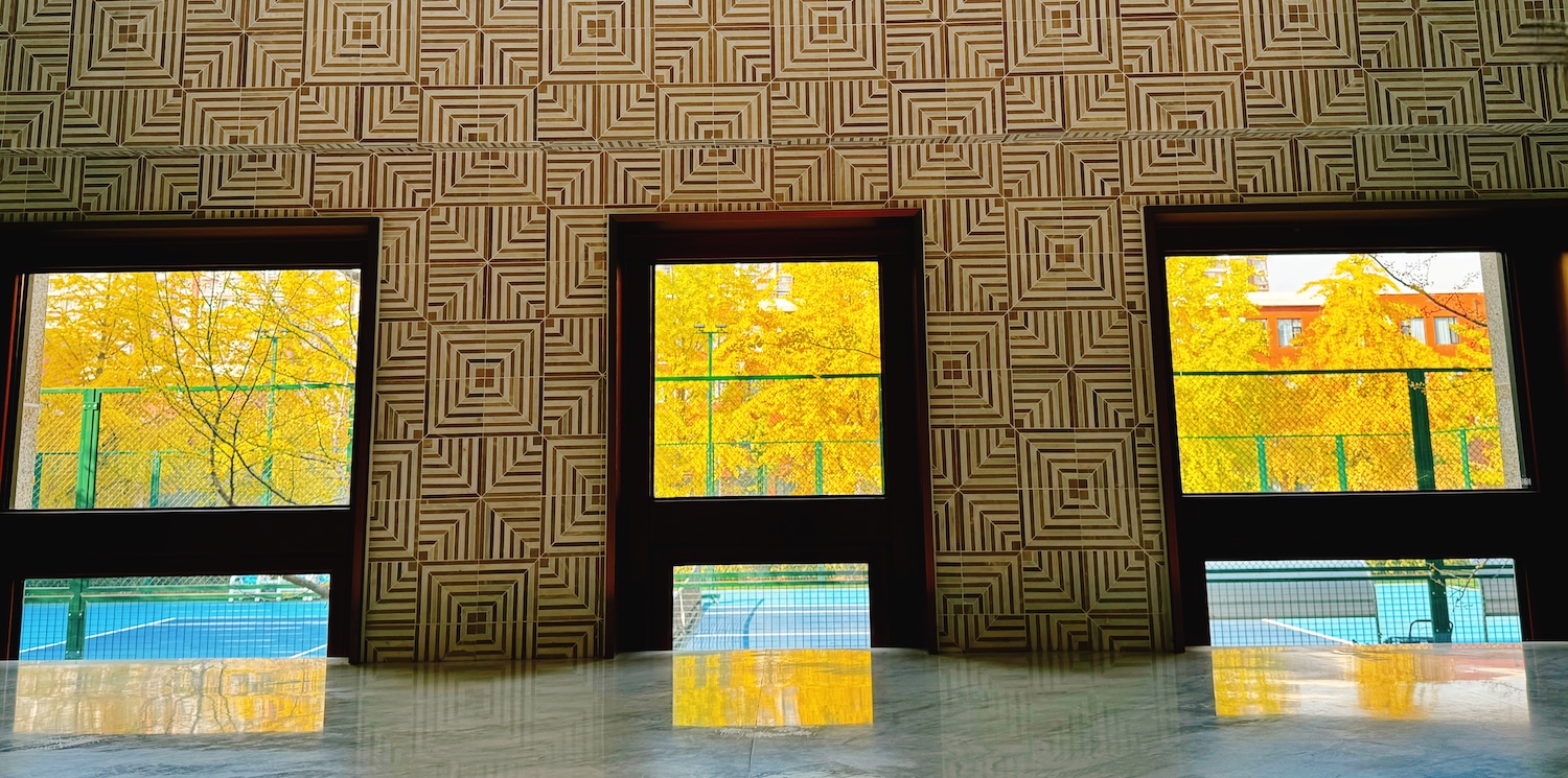 秋日的陽光流淌過莊重的樓宇,用光與影細細雕琢出建筑的沉靜與溫暖。