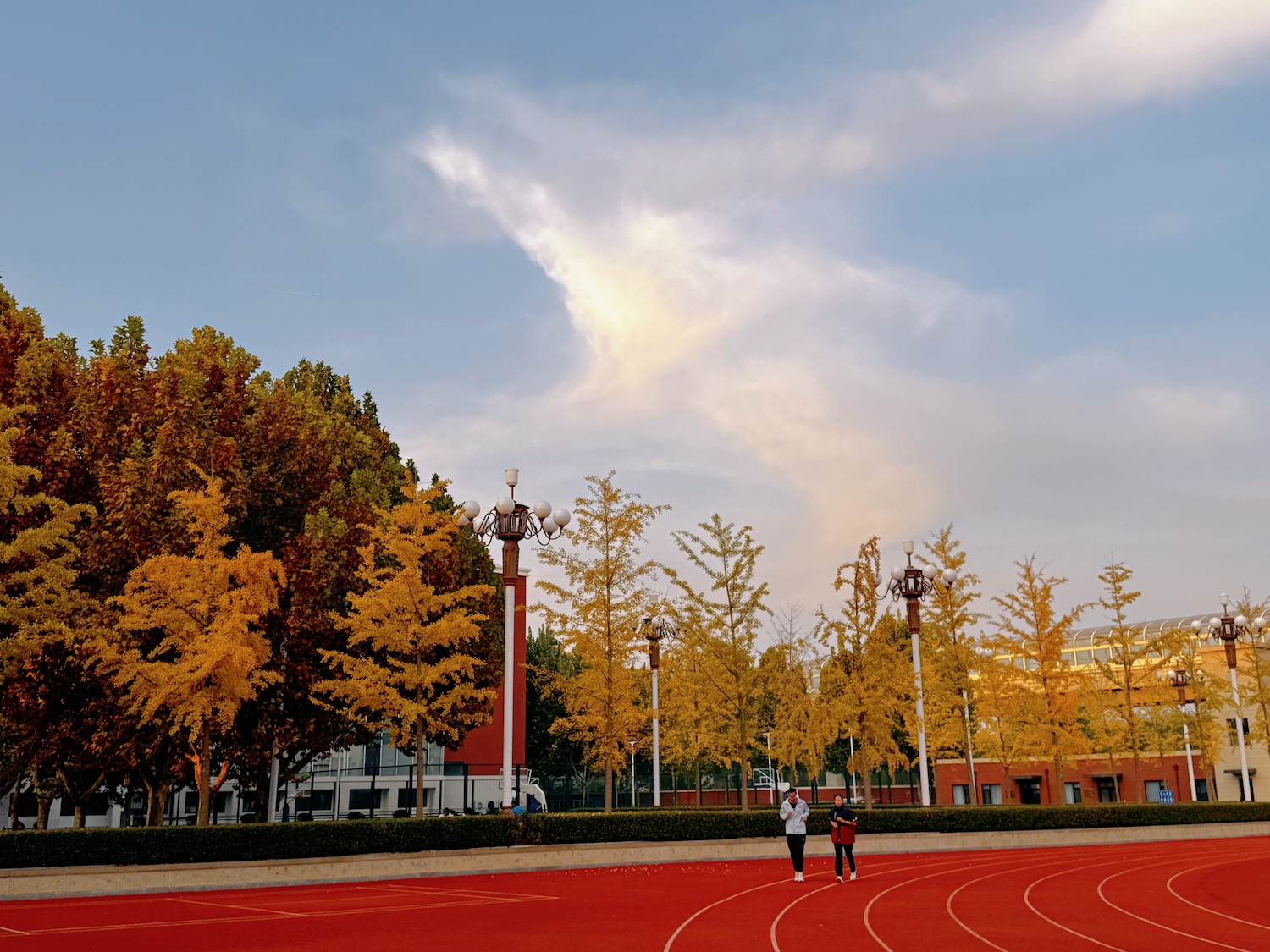 跑道旁的樹木換上秋裝,運動的活力與落葉的靜美在此刻交織,碰撞出無限的生機。